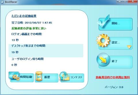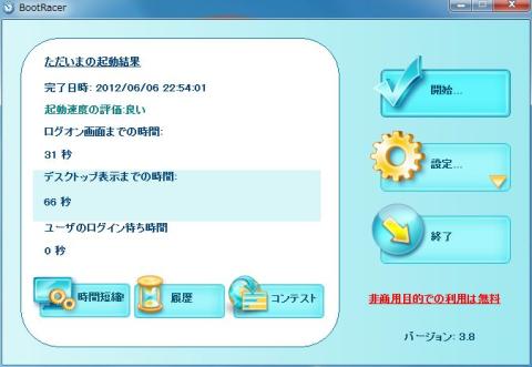 BootRacer:ログオン画面まで:34秒、デスクトップ表示まで:53秒