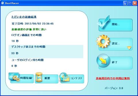 BootRacer:ログオン画面まで:16秒、デスクトップ表示まで:33秒