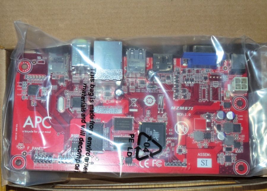 基板としては別に販売されるのですが、APC-8750はAndroid 2.3を搭載したボードと、ACアダプタ、USBケーブル A-A、IOバックパネルと、このシールを含んだセットで提供されます。