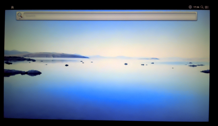 HDMI接続して、キーボード、マウス、100BASE-T接続を済ませて電源スイッチを入れると、起動ロゴが出ます。(光はフラッシュのせいです)