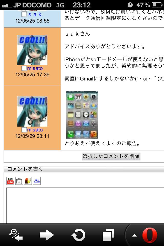 もう一つは、通常届くメールの他にi-mode.netでログインを行うたびに、キャリアメールにメールが届くため、定期的にminiUIMをFoma端末に差し替えてメールをダウンロードしてやらなければなりません。i-mode.netでメールを閲覧するだけではdocomoのメールサーバーからメールの削除が行われないためです。