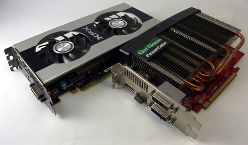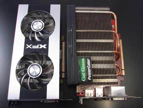 HD5750側がファンレスな分余計に大きなヒートシンクと張り出したヒートパイプを持っているというのもあるが。