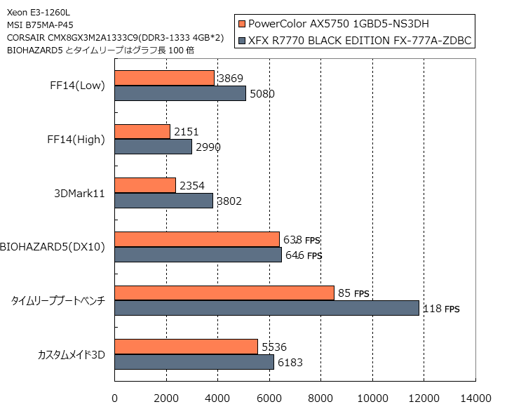 ベンチによって伸び幅の差が大きいが、低クロックのXeon E3-1260Lの影響もあるのだろう。しかし特に重量級ベンチにおいてスコア上昇が大きい(タイムリープはエフェクト類全てオンにしたので結構重い)。表にある3DMark06のHD7770スコアが無い理由は後述。
