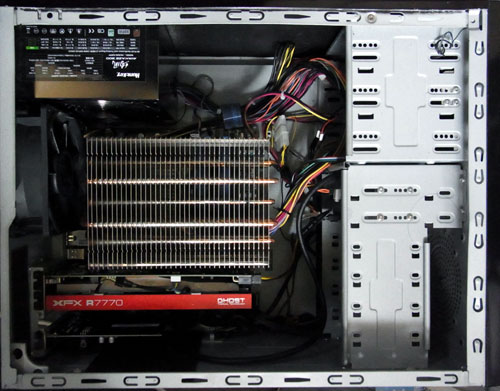 それでは実際にネトゲPCに組み込んでみる。細かい構成は上記日記参照として、Xeon E3-1260LにB75MA-P45、そこに今まではファンレスHD5750を搭載していた。