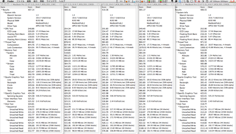 Xbench,SSD搭載のMacBook Pro 15-inch (2.2GHz, Early 2011) vs MacBook Pro 13-inch