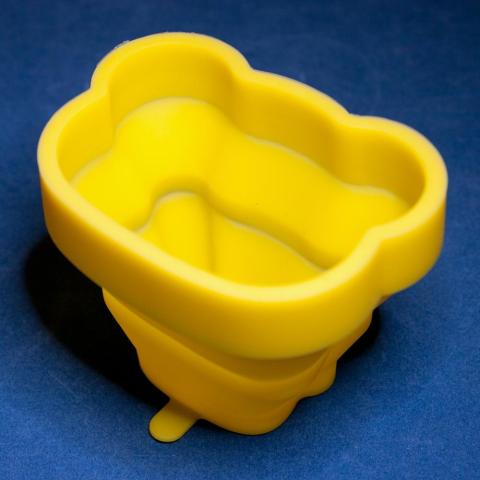 上から見るとリラックマの顔のシルエットになっているシリコン製折りたたみカップです。