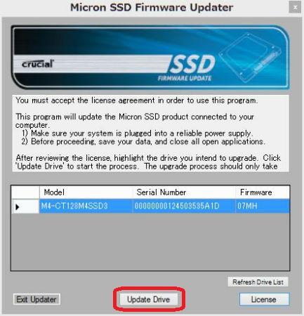 「Update Drive」ボタンをクリックするとアップデートが始まります。
