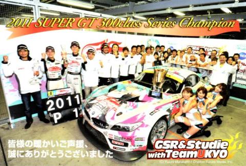 ことし(2012年)は2台体制で臨む『GSR & Studie with TeamUKYO』。2011年度ウイナーコンビ、谷口信輝選手と番場琢選手はともにチームに残るが、エースドライバー谷口がチャンピオンナンバー「0」をつけて2011年度の路線を引っぱるカラーの「GSR 初音ミク BMW」号で片岡龍也選手とコンビを組む。一方番場選手はもう一台のオレンジ基調のボディカラーに3頭身のミクが書かれた「GSR ProjectMirai BMW」号のエースドライバーに昇格し、佐々木雅弘選手とコンビを組む。抽選で引き当てたのは前年のウイナーカーがつけていたナンバー「4」!