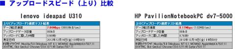 実は私のこのU310のレビューが他の方よりも遅くなったのは、無線LANが非常に不安定だったり、他にも問題の箇所があり、初期不良として修理に出していたからなのですが(無線LANのルーターの真横でもぷつぷつ接続が切れまくって何もできなかった)代替機で無線LANの速度を計測してみました。