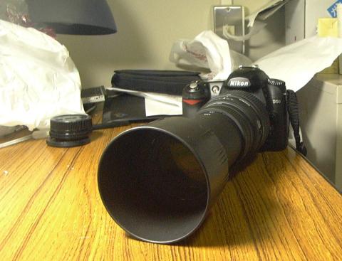 付けるカメラは、ニコンのD50。付属のフードと一緒に付けると、対戦車ライフルみたいになりますw 長砲身なんたらです。