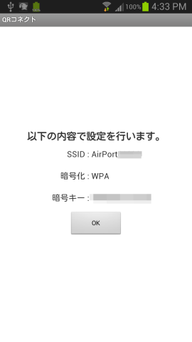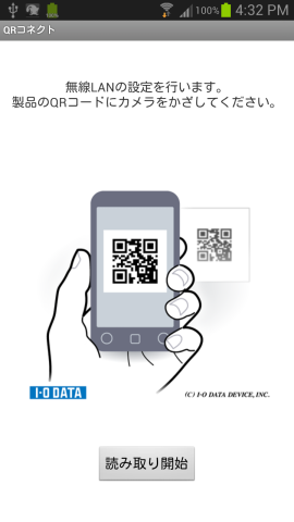 - 読み取り開始でQRコードを読み込むと設定が読み込まれます。