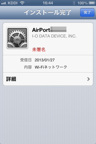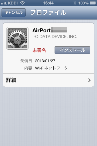 - 「次に進む」とプロファイルのインストール画面になるので、インストールします。
