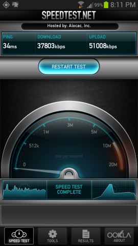 接続速度の比較は、「Speed Test」アプリを使用して比較してみました。