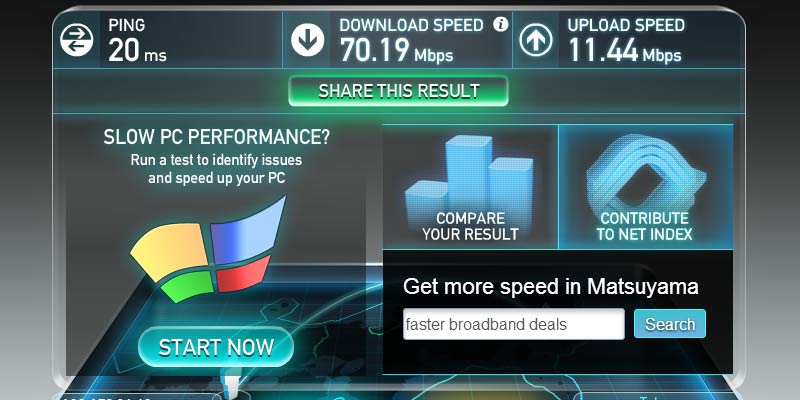 ダウンロード速度は70Mbpsならば十分だと思います。最大が100Mbpsなので70%となっています。