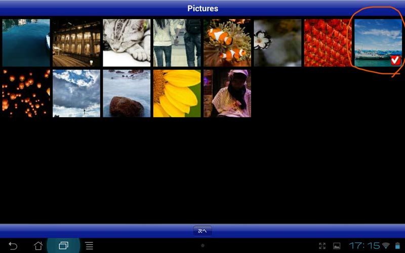 もちろん、スマホやタブレットのカメラで撮影したものでもOKです。選び終わったら、「次へ」をタップ