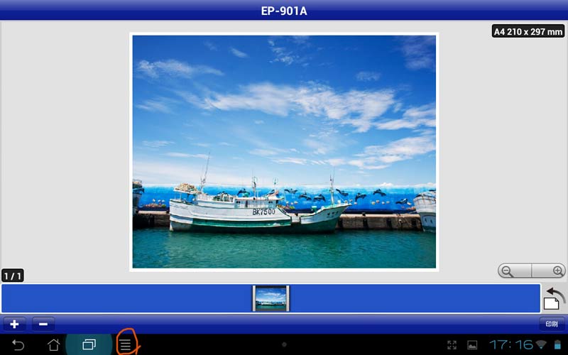 「スマホで写真、画像などを自在に楽しむ」ということですので、タブレット内の画像を印刷をしてみました。