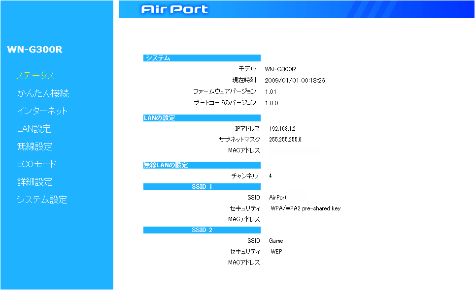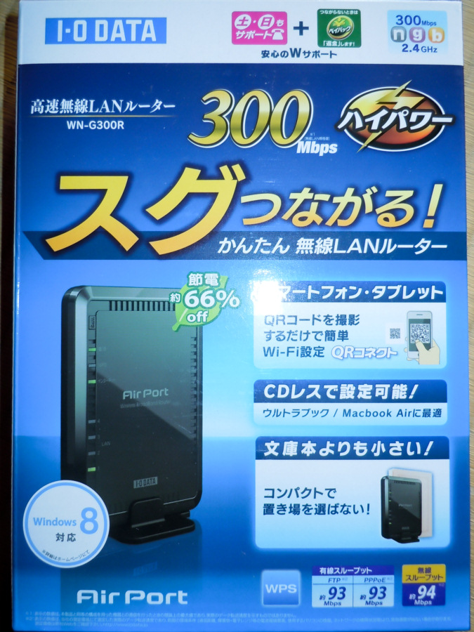 今回は、この WN-G300Rを はにゃ実家のネット環境改善のために帰省するタイミングで導入しました。
