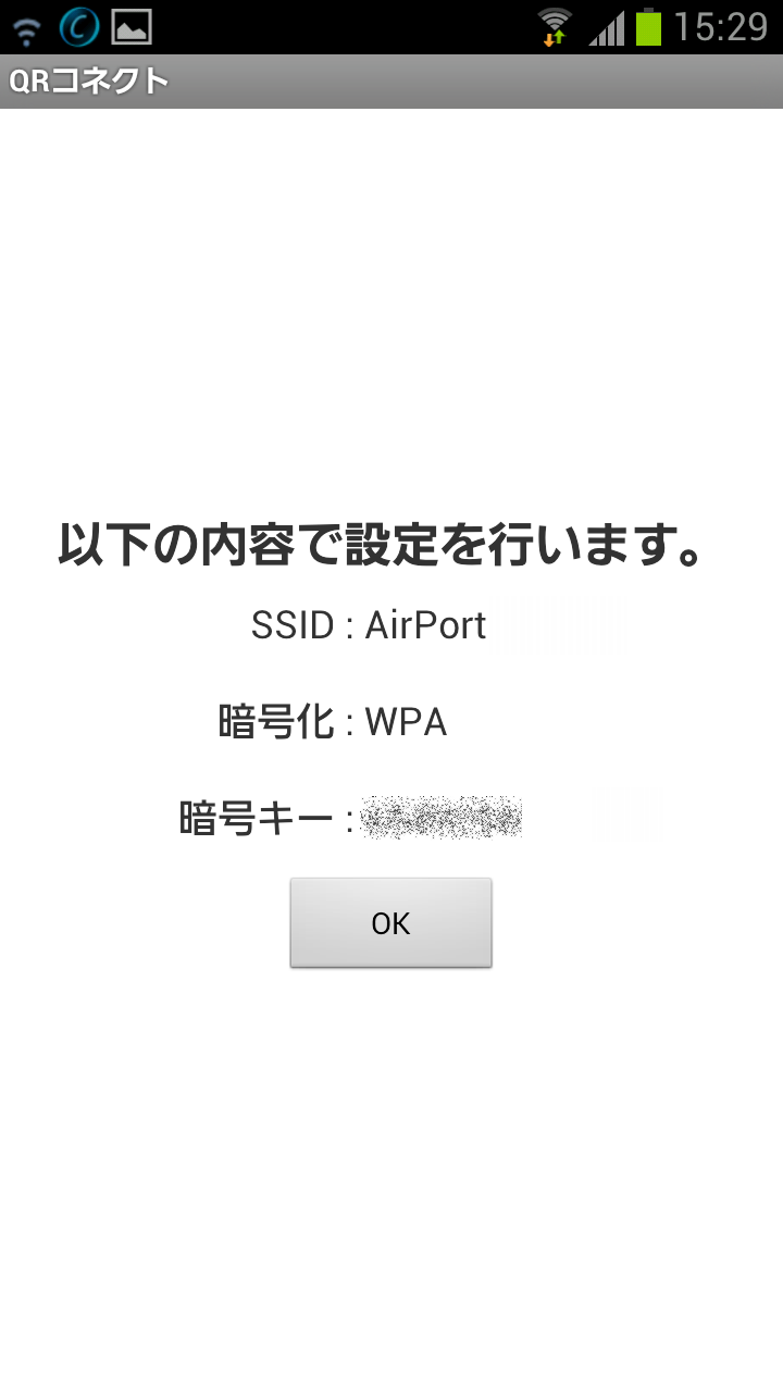 読み取れると、SSIDと暗号キーが読めたらしい!