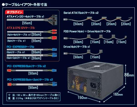 なお、ケーブル長ですが電源ボトムレイアウトケースや