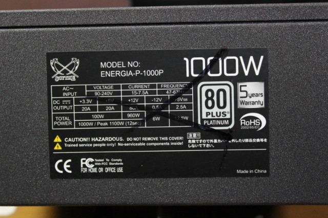 メーカーはサイス、容量1000Wで更に80+Platinum認証の電源。
