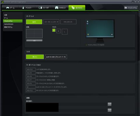 NVIDIA SHADOW PLAYでは下記に設定できます。