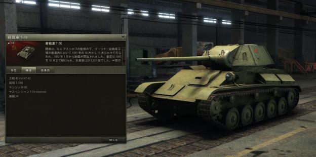 PC版のWoTはレビューに当選してからはじめたばかりなのですが(今まではiPhone版メイン)、今のところ好んで使っているのはソ連のT70という軽戦車です。