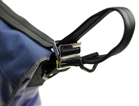 ターポリンによる完全防水&バッグの内側は取り外し可能な2重構造で、真鍮製のバックルとシートベルトを使った超耐久のベルト。カラーオーダーと糸色の選択、好きな文字でステンシルを刻むことが出来るんです。