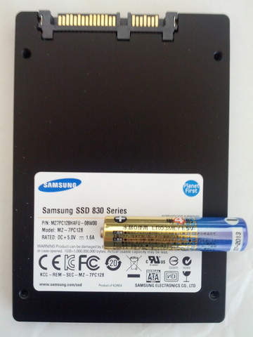 7mm厚、NANDフラッシュ、コントローラともにSamsung内製のSSD830です。