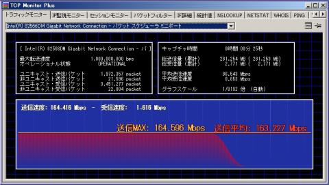 他のNASではFTPで計測していましたが、本品はFTPサーバを搭載していないため、ファイル共有で転送してネットワークモニターで観測していました。