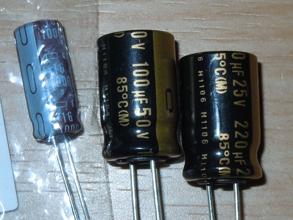 左は 日ケミの KZH 1000μF,16V (耐熱温度 105℃)です。作り方が全然違うため1000μFでもこのサイズです。