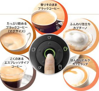 それぞれから、(ブラック、エスプレッソ、ラテ、カプチーノ)を楽しめます。