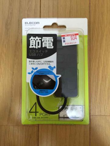 エレコムのUSB2.0対応のハブです。バスパワーの4ポート搭載。