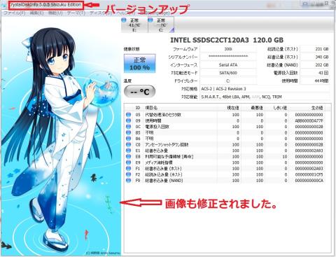 CrystalDiskInfo 5 Shizuku Edition のバージョンアップがありました。