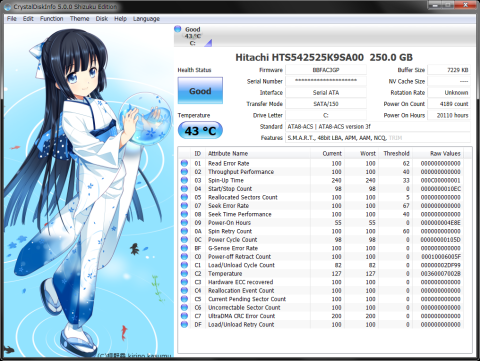 メイン機MBPのHDDはこんな。つかSATA1.5Gbpsまでしか対応してなかったんか(苦笑