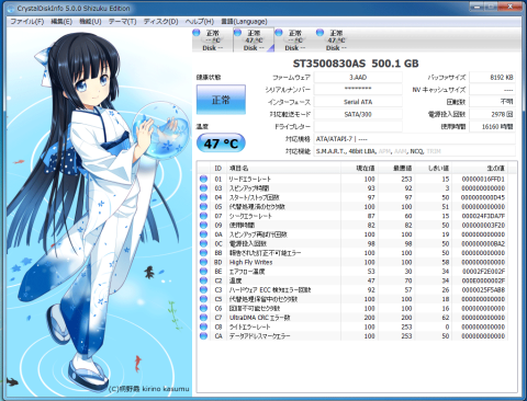 新世代ディスク情報ツール : CrystalDiskInfo 5 Shizuku Edition