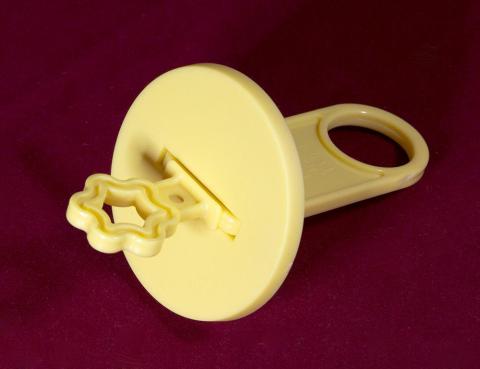 プッチンアイスを作るには、まず受け皿に上からプッチンバーを挿し