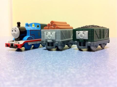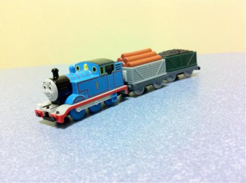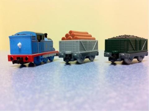 ロングトミカにトーマスが二種類あり、そちらは別の貨車を引いていたりします。