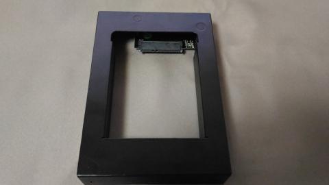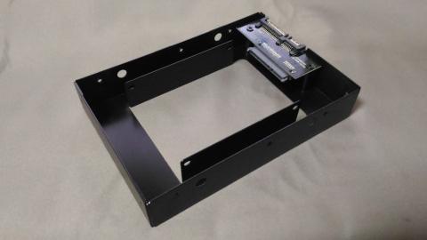 構造は単純明快、変換金具とSATAコネクタを3.5in-HDDと同じ位置へずらす基盤が付いているだけ。