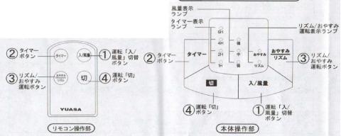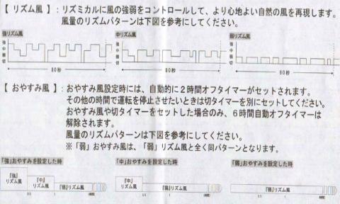 リズムモード :数秒間隔で送風を止めより自然風に近くする。