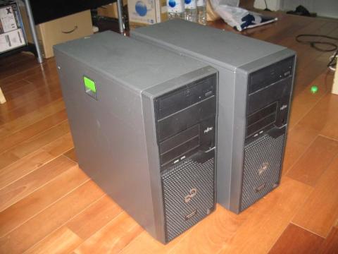 値段の割りに安いサーバーってよかったので、HP、NECと購入したのでDellは少し高値なので富士通も購入しました。HPも内部は感動したのですが、私的には富士通もかなりいいなと思いました。普通に使う分には最高です。HPのようにグラフィックスカード等を追加しても、ファンの音が轟音にならないのでとてもナイスです。難点をいうとECCメモリと電源が250Wではなくて350W-500Wぐらいの電源とNon Eccメモリであったらな~と思います。ちょっと周りが少し汚いのですが2台のTX100 S3。