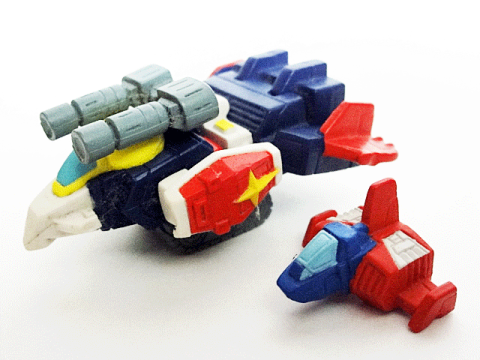 「Gアーマー」はガンダムを上に向かせた状態で、Gファイターの前後パーツで挟んだ