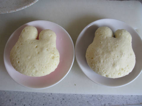 といたホットケーキミックスを型に流しいれてレンジへ。