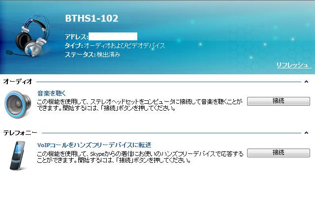 マルチファンクションボタンを5秒以上押して、ペアリングモード(LEDランプランプを青⇔赤点滅)にしてから、Bluetoothアダプター付属ソフトを起動させるだけで簡単に認識できます。
