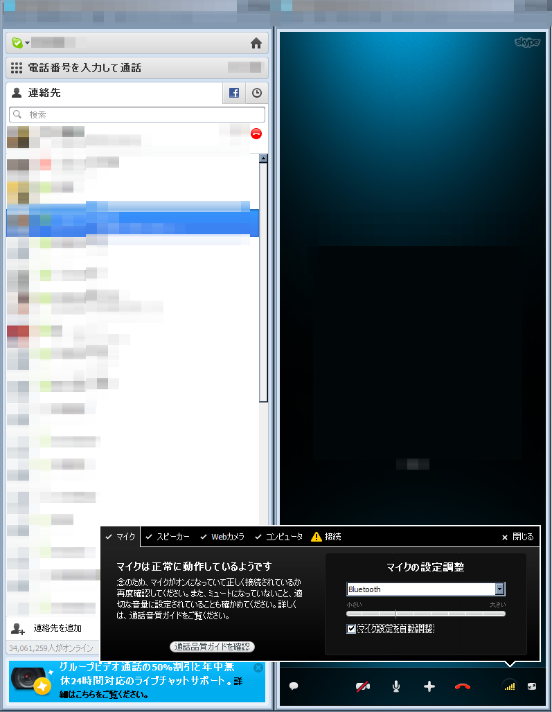 こちらも写真ではわかりにくいと思いますが、PSVita上のSkypeでハンズフリー通話をしているところです。自分で自分の声を聴くのはなんだかちょっと恥ずかしいです。