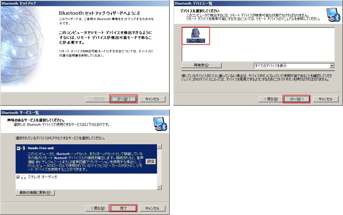 ※他のヘッドセットやBluetooth製品を接続しているとペアリングに失敗することがあるので、接続はすべて解除すること。それでも失敗する場合は、登録をすべて解除すること。