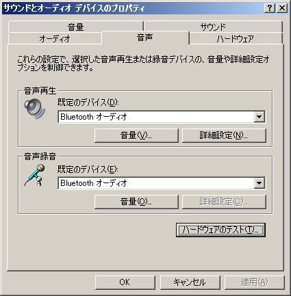 4.ヘッドセットで音声の出力およびマイクの必要があるので、「コントロールパネル」→「サウンドとオーディオ」を表示し、「音声」タブの内容を下記の通り変更します。