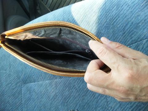 外側の裏にもファスナー付のポケットがついています。