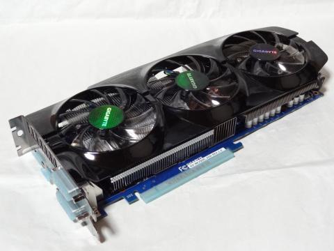 カードには、ギガバイトのハイエンドビデオカードに採用されている『WINDFORCE 3X』が搭載されており、3連のファンが目立っています。
