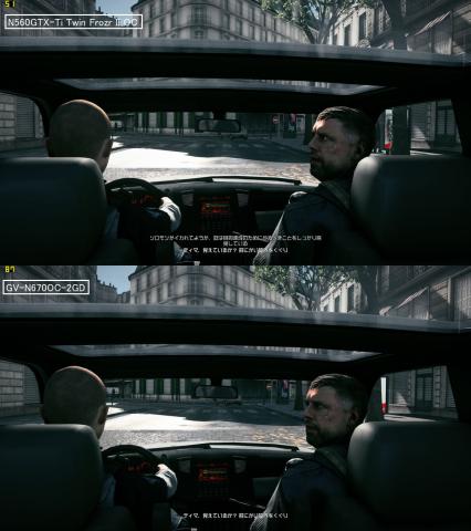 検証に使用したシーンは『COMRADES』でトンネルのシーンから証券取引場へ向かう途中のシーンです。画質設定はプリセットにある『最高』設定です。