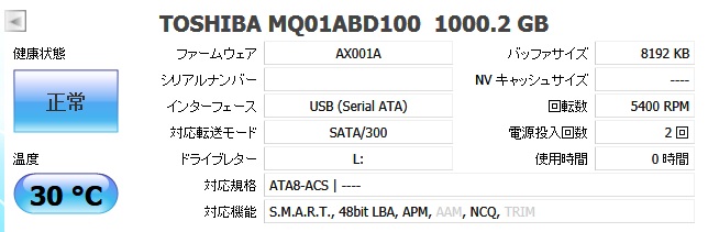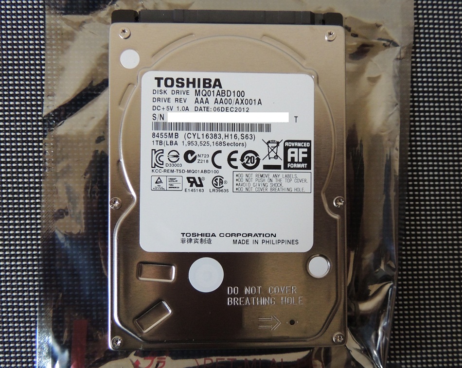 バッファサイズは8MB、回転数は5400RPMと、2.5インチHDDとしては既にミドルクラス以下のスペックです。